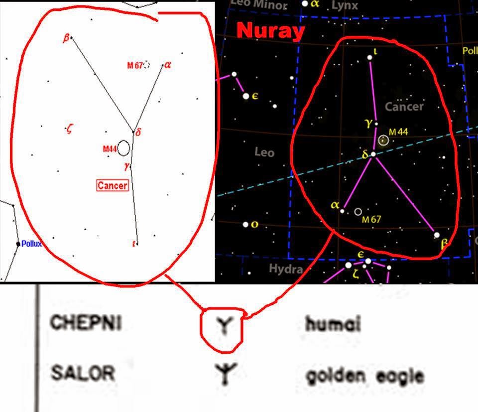 EJDERHANIN BAŞI..Akrep Takımyıldızı ve Mars SAVAŞ ile alakalı gökyüzü cisimleridir ve Türkler için çok büyük önem taşır..Salur Boyu Tamgası Olarak bugüne gelen Tamga..Kazakistanda ve Volga kılarında bulunan Antik El Bombalarının Türkler için bir FELSEFESİ vardır...Savaş Felsefesi...:).Üzerine Tamga Olarak Ejderha yani Akrep Takımyıldızının BAŞINI işaretlemişler. Savaşçı Mars'ın En Etkili Olduğu Konumdur..Nuray Bilgili..
